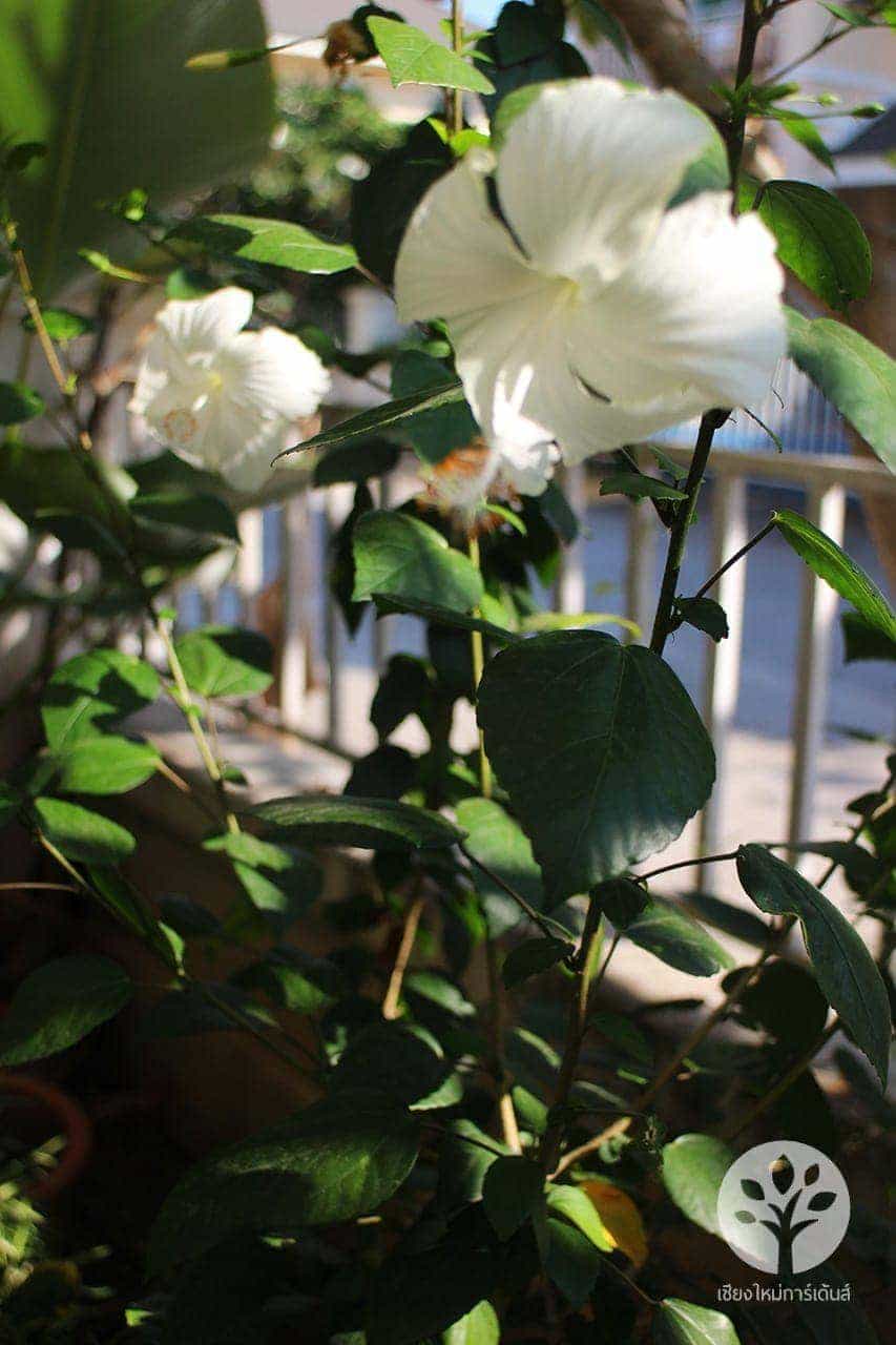 ร้านเชียงใหม่การ์เด้นส์ ขาย ต้น ชบาสีขาว เหมาะแก่การทำแนวรั้ว มีหลายขนาดค่ะ