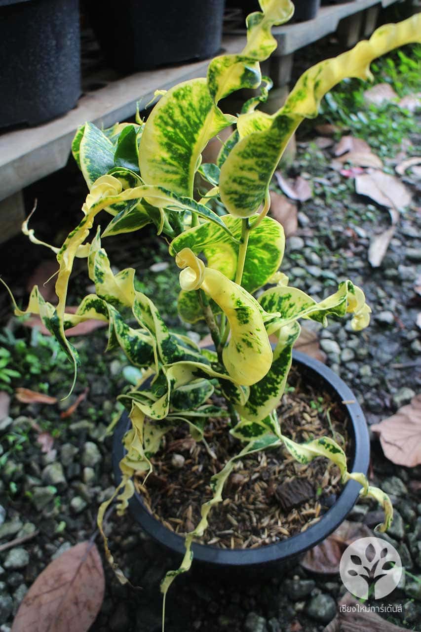 ร้านเชียงใหม่การ์เด้นส์ จำหน่ายต้นโกสนโบราณพันธุ์ดอยปุย โกสนดอยปุย เป็นไม้ใบกลม มีสะโพก ปลายใบแหลมบิดเป็นเกลียว ปลายเรียว มีติ่ง แตกพุ่มสวย กัดสีขาว มีติ่ง เป็นโกสนที่จัดอยู่ในหมวดเบ็ดเตล็ด เป็นชื่อเมืองในท้องถิ่น