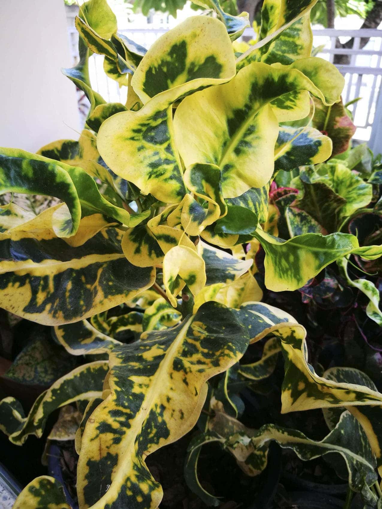จำหน่ายโกสนพันธุ์ศรชัย โกสนใบยาวยักโค้ง ก้านใบมีสีเขียวปลายใบมีสีเหลือง สวยงาม