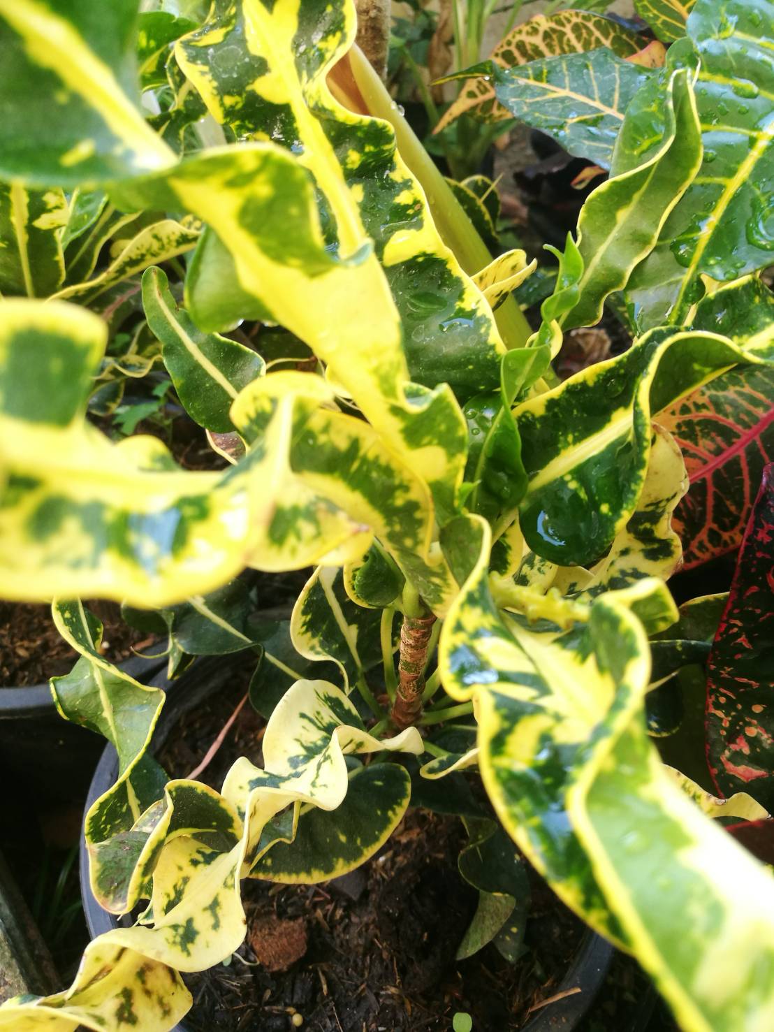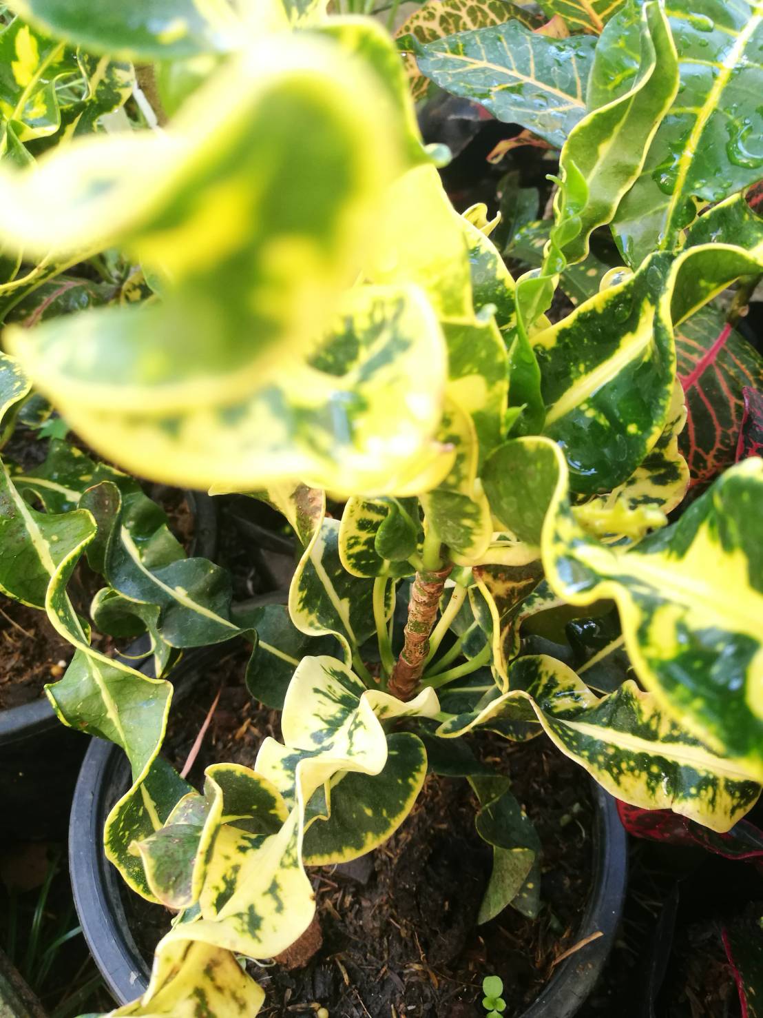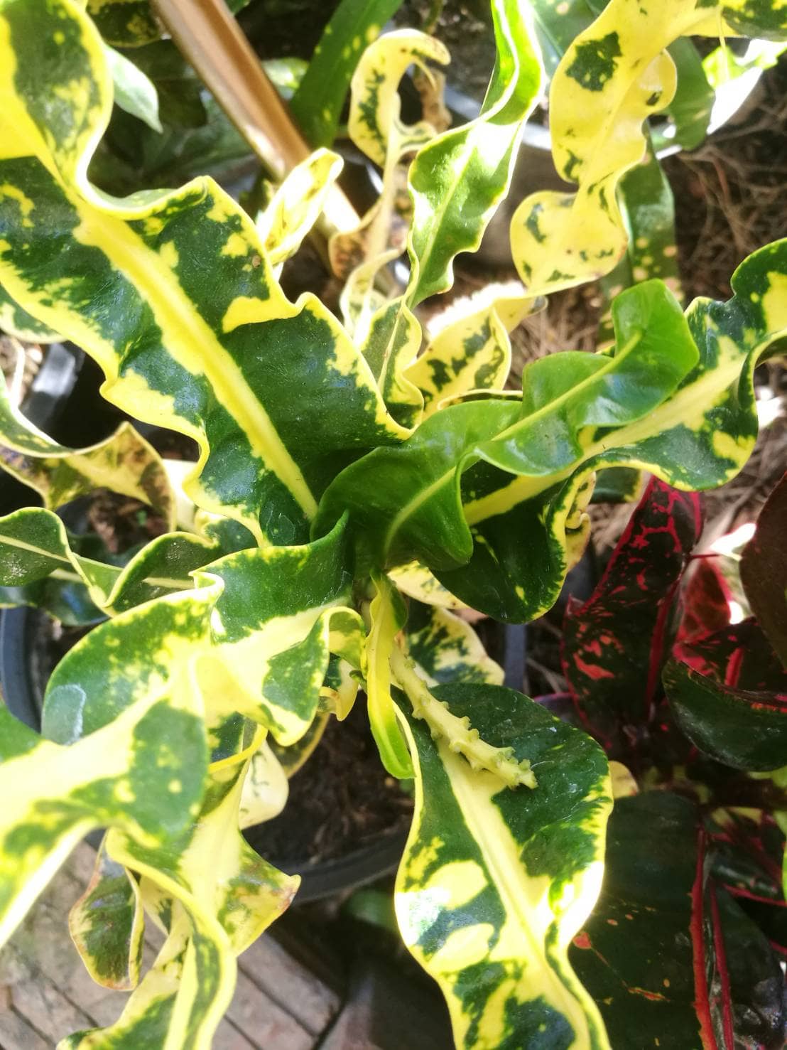 จำหน่ายโกสนไอยเรศ ลักษณะเป็นโกสนสีเขียวเหลือง ใบมีขนาดกลางและยาว บิดเกลียว ราคาถูก