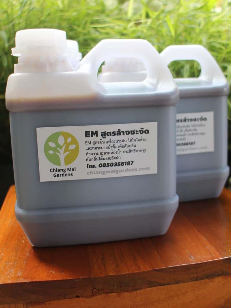 ร้านเชียงใหม่การ์เด้นส์ จำหน่ายจุลินทรีย์ EM น้ำหมักชีวภาพขนาด 1 ลิตร จำหน่ายที่ร้านเชียงใหม่การ์เด้นส์ ประสิทธิภาพสูง คุณภาพเลิศ กลิ่นหอม บ่มนาน เหมาะสำหรับล้างเครื่องประดับ ใส่ในโถส้วมและท่อระบายน้ำทิ้งเพื่อดับกลิ่น ทำความสะอาดห้องน้ำ ดับกลิ่นในห้องครัว ไม่ขี้เหนียวส่วนผสม คุณภาพดี มีกลิ่นหอม ไม่เหม็น คุณแม่บ้านใช้แล้วติดใจจนบอกต่อ